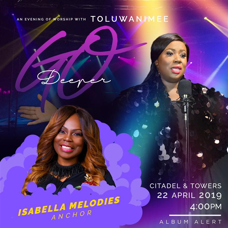 “An Evening of Worship with Toluwanimee” will be anchored by the iconic lady of songs, UK based Nigerian Gospel singer Isabella Melodies.