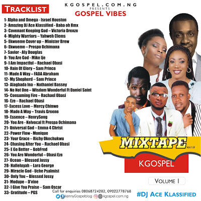 The Very much Anticipated KGOSPEL #GOSPEL VIBES Online Mixtape Vol.1 September Edition) is out hosted amiable Kgospel Vs DJ Ace Klassified, He sets the Atmosphere on fire with raving tracks. The Mix features Top Artist namely Rachael Obasi, Nathaniel Bassey, Afy Douglas, Sam Prince, Victoria Orenze, Mercy Chinwo, Minister Brew, D’Vine, BobFred, and many more….