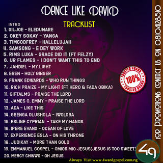 4WARDGOSPEL presents its first mixtape for the year 2019 titled “DANCE LIKE DAVID” featuring different collections of incredible gospel music stars on this hit mixtape.